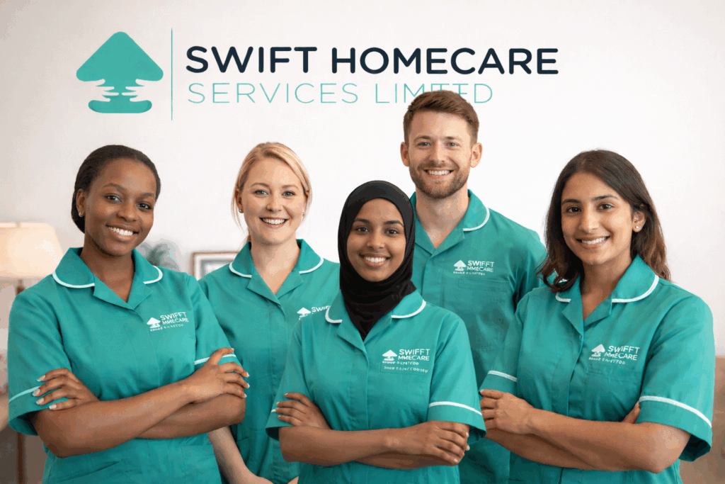 Swift Homecare Services, we are a team of caring, professional, and compassionate individuals who provide personalised care services in the comfort of our clients' homes. Our services include personal care, companionship, dementia care, respite homecare, nursing, and live-in care, all delivered with respect and empathy to individuals aged 18 and above.